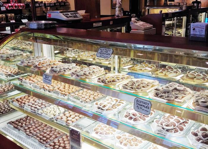 for their premium handcrafted artisan Ecstasy Truffles. Whenever possible, they use locally sourced ingredients and make all their chocolates in small batches to ensure freshness for their customers. Named a Grand Master Chocolatier Award Winner, this shop is one of the best chocolate shops in the country. Along with truffles, they also specialize in sea salt caramels, Chocolate Fetish frogs- their take on the classic turtle, chocolate rounds, and sipping chocolate.