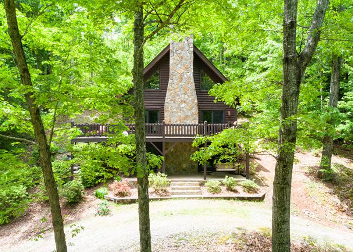 This lovely log home features a majestic stone fireplace and an open floor plan with a light colored wood interior. There are two king-sized bedrooms, one on the main floor and on the second. Also on the second floor, there’s a loft overlooking the living room. The lower level includes a recreation room complete with a pool table, card table and a variety of games. From the top deck, take in the forest expanse and dine on the picnic table. From the lower deck, you can access the private lake dock or relax in a rocking chair. As a bonus, your well-behaved dog can join you in the home as this house is one of Greybeard Rentals’ pet-friendly homes. There’s even a small enclosed yard so your dog can have some free time outside safely.